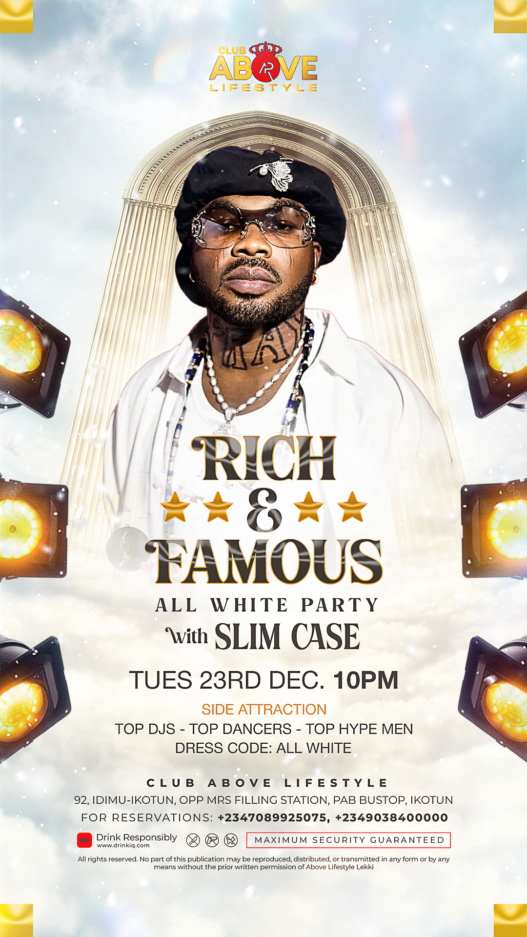 Rich & Famous All White Party at Above Lifestyle — where Lagos steps into pure luxury. A night of elegance, prestige, and high-end style, featuring top-tier DJs, premium bottles, dazzling lights, and an elite all-white crowd that defines sophistication. It’s the ultimate celebration for Lagos’ trendsetters, tastemakers, and the truly distinguished.