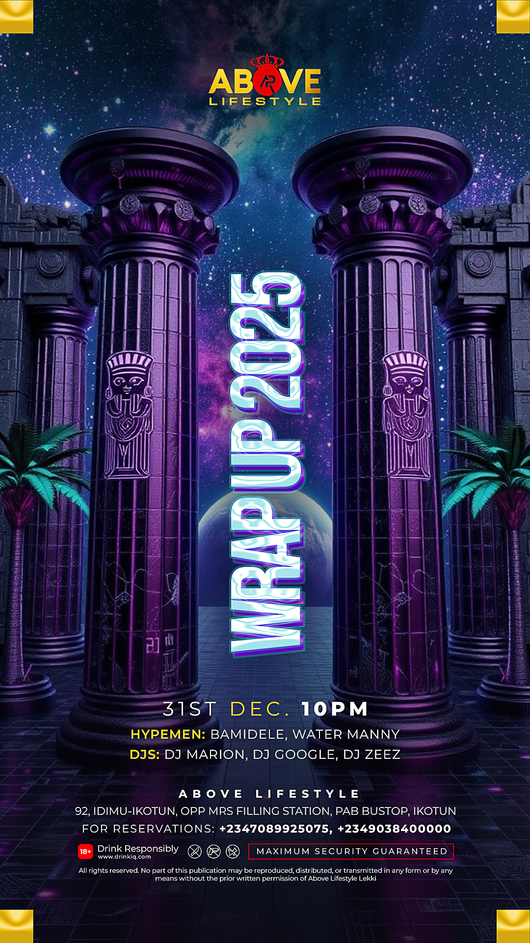 Wrap Up 2025 at Above Lifestyle — where Lagos closes the year in ultimate luxury. Sophisticated vibes, top DJs, premium bottles, dazzling lights, and an elite crowd come together for a night of music, style, and unforgettable energy. Celebrate the year’s highlights in true Lagos fashion.